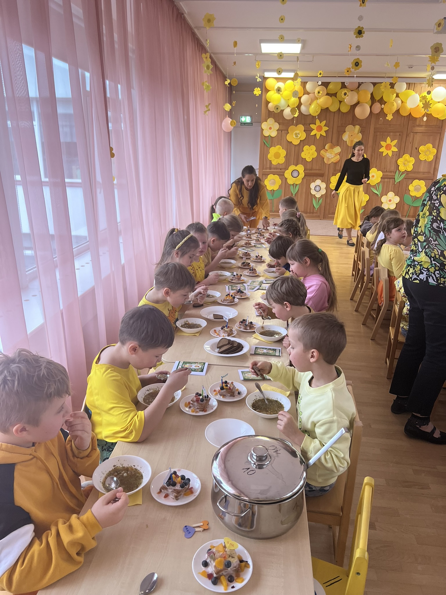 Teisipäeval toimus traditsiooniline sünnipäevakohvik, kuhu iga rühm oli valmistanud maitsva küpsisetordi, mida ühiselt saalis nauditi. Päeva muutis eriliseks õpetajate esitatud nukuetendus „Väike Mai“. Kõiki ühendas rõõmsalt kollane värv, mida kandsid nii lapsed kui ka täiskasvanud.
